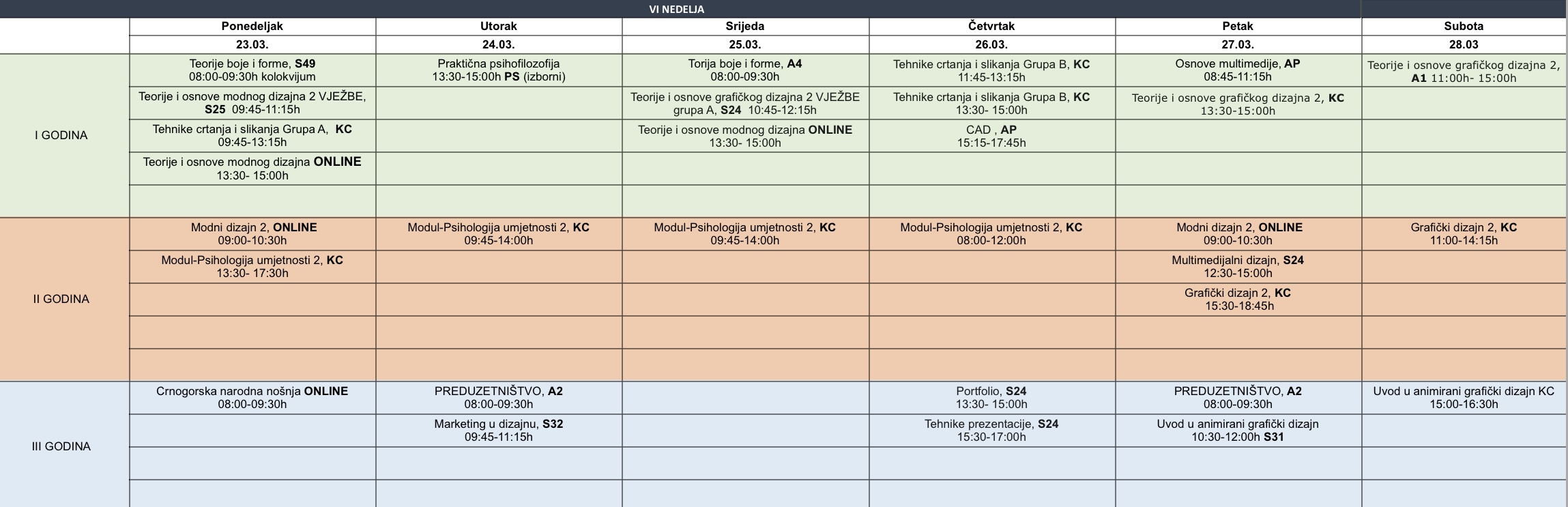 Poštovani, U prilogu se nalazi raspored za VI sedmicu nastave.